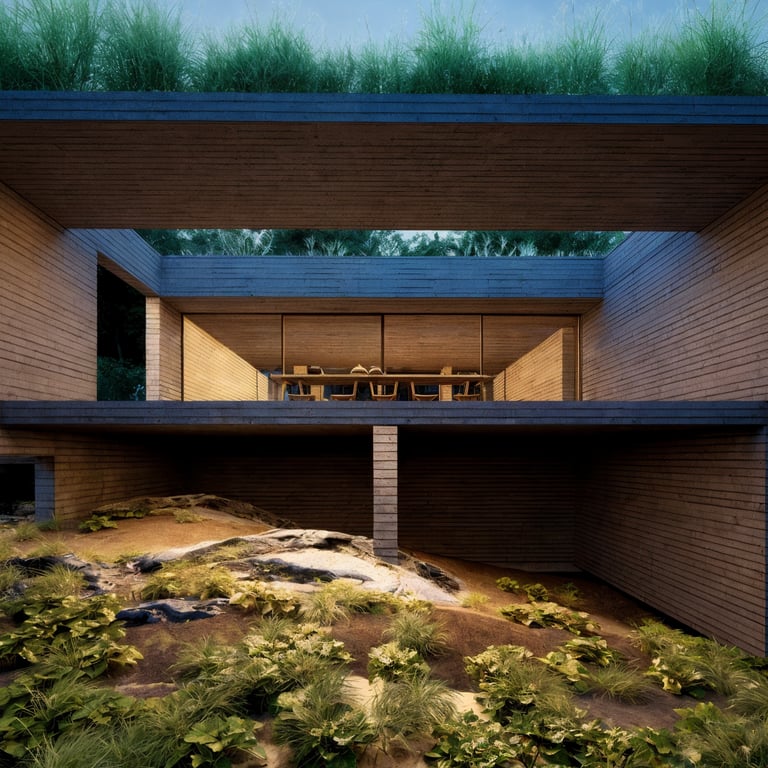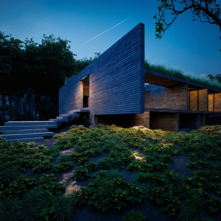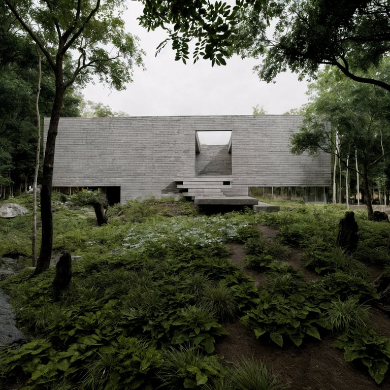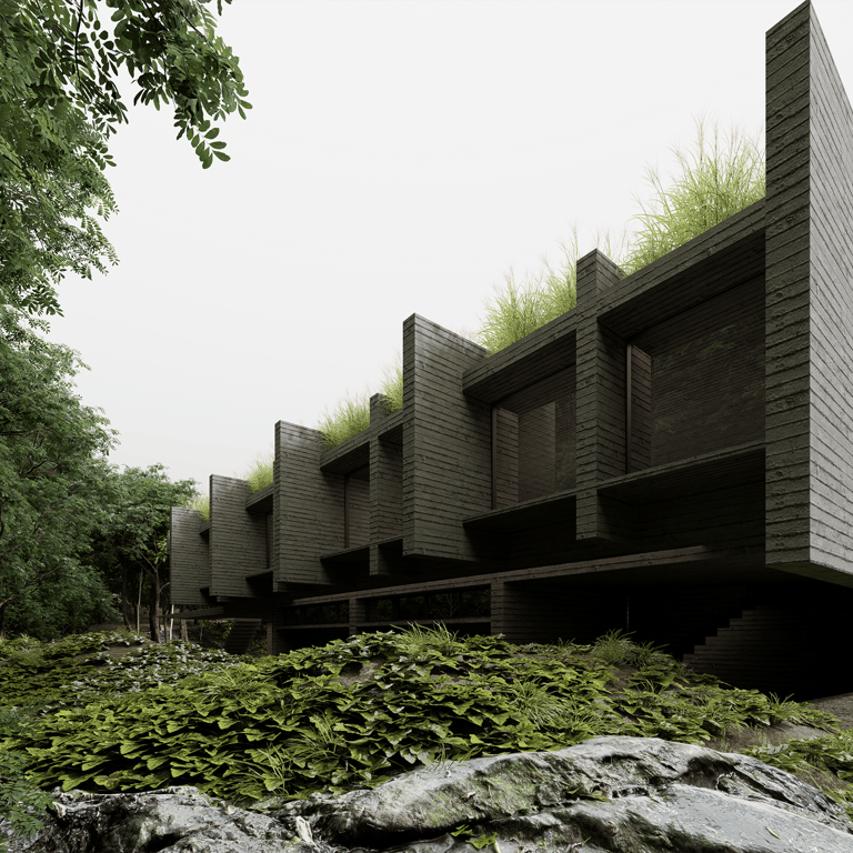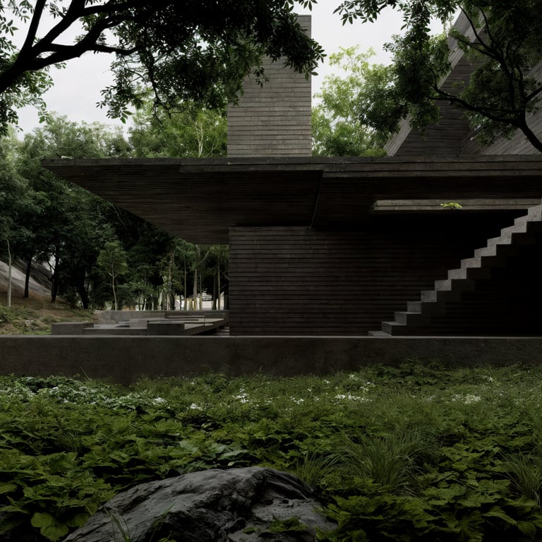 Esta casa es una exploración arquitectónica sobre el peso, la gravedad y la relación esencial entre estructura y paisaje. Implantada en un entorno boscoso, la vivienda se concibe como una pieza monolítica que emerge del terreno y, al mismo tiempo, parece flotar sobre él. El proyecto no busca mimetizarse con la naturaleza de manera literal, sino establecer un diálogo de contraste controlado: geometría precisa frente a organicidad, horizontalidad construida frente a verticalidad arbórea.
