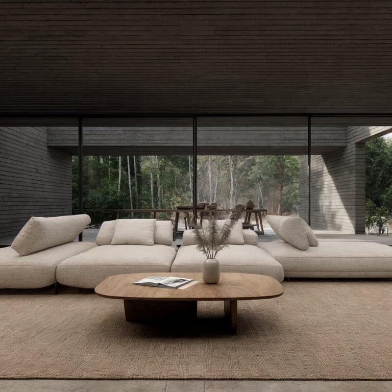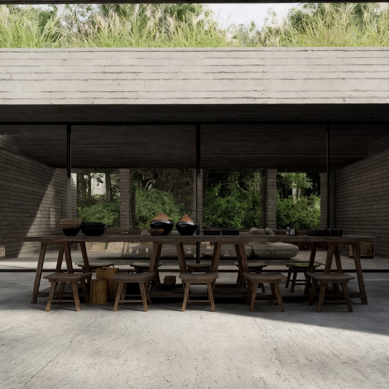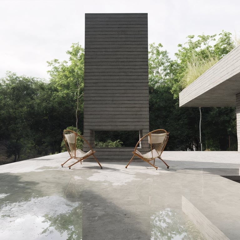 Materialmente, CHIHUACO se define por una envolvente continua de concreto texturizado y planos revestidos en madera oscura. El concreto aporta masa, permanencia y carácter tectónico; la madera introduce calidez y profundidad. La combinación no es decorativa, sino conceptual: expresa la dualidad entre lo permanente y lo habitable, entre estructura y experiencia. Cada material se manifiesta con honestidad, revelando su textura, su peso y su proceso constructivo.